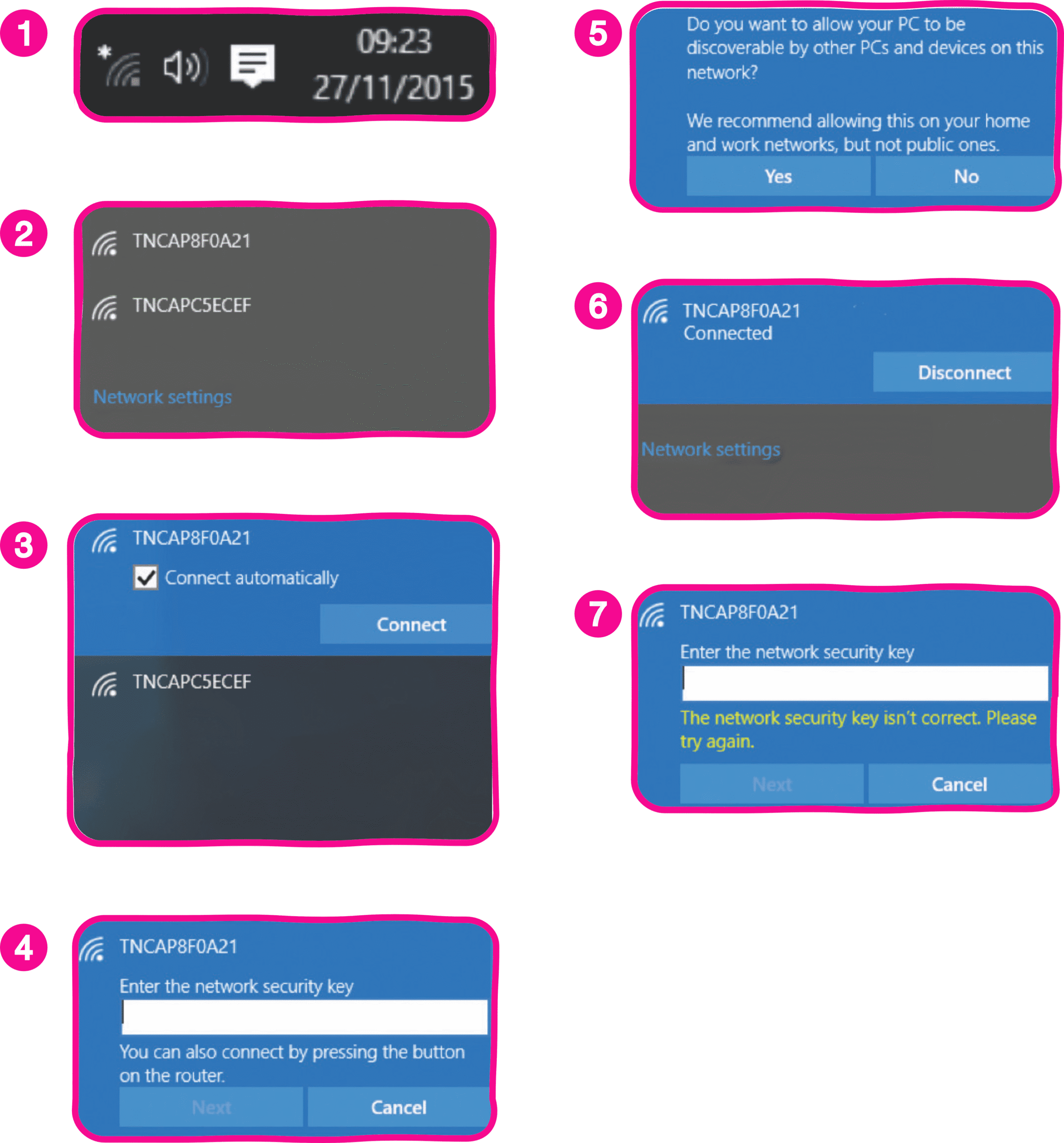 8. Re-enter the key at this stage and if correct the network will again connect.